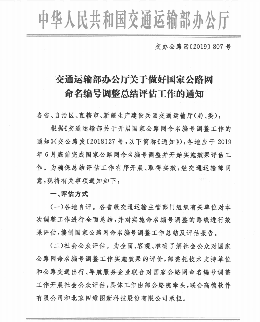 交通运输部办公厅关于做好国家公路网命名编号调解总结评估事情的通知