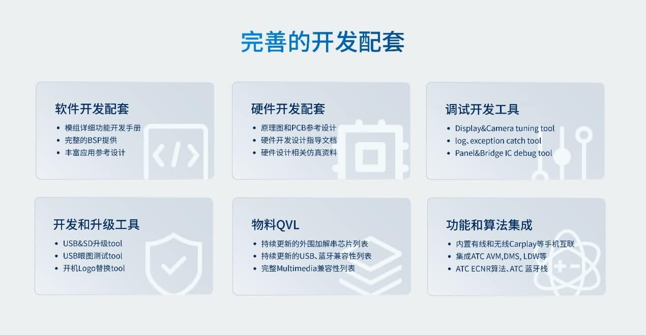 AC8257车联网模组可提供完善的开发配套服务,包括软硬件开发配套、调试开发工具、开发和升级工具、物料QVL、功效和算法集成等,内置生态集成度高。