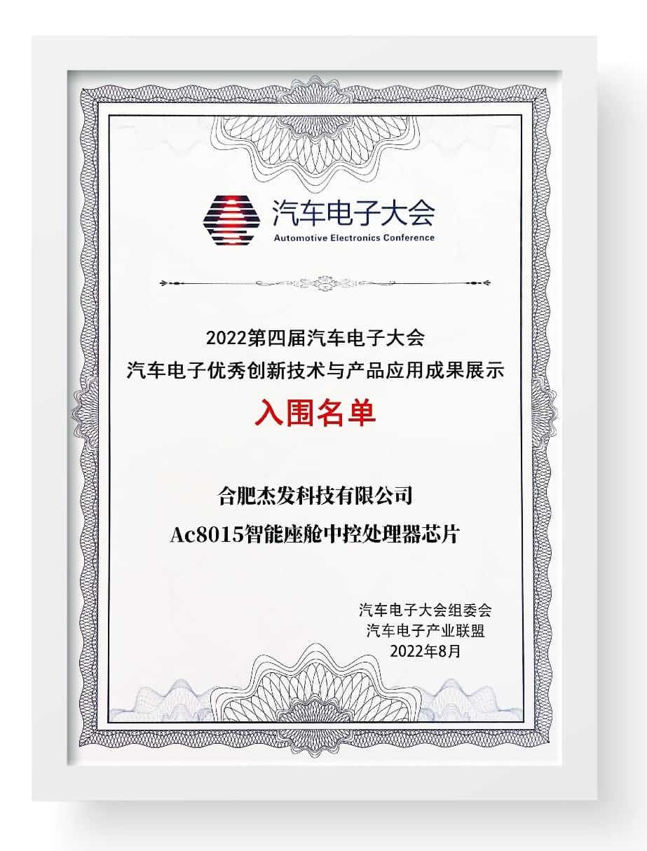 图:AC8015入围“汽车电子优异立异手艺与产品应用效果奖”