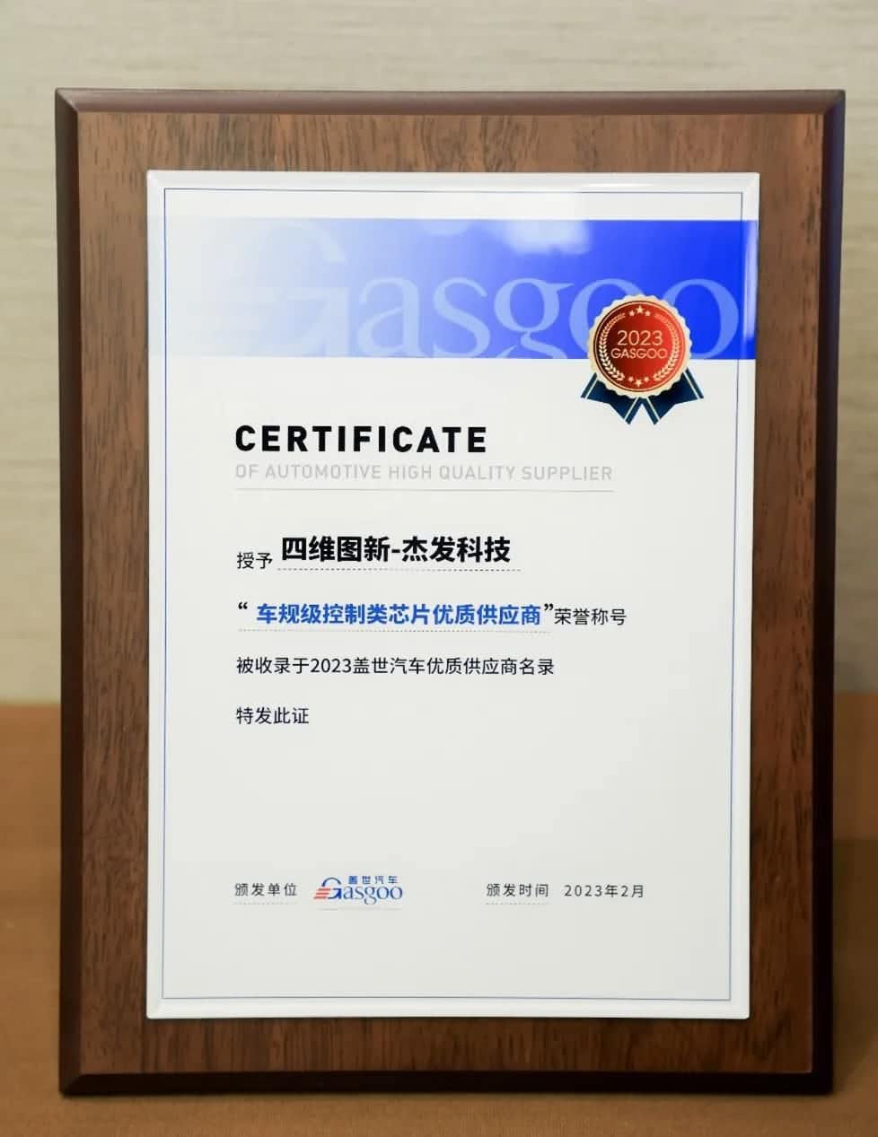 杰发科技荣获“车规级控制类芯片优质供应商”