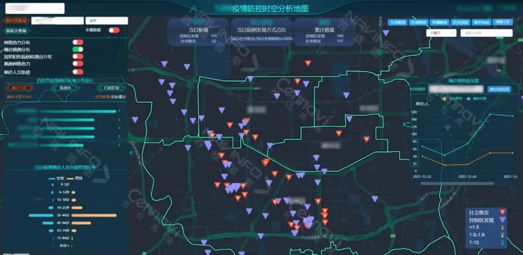 疫情时空剖析平台 “疫情看板”功效 ,集成多个资讯转达、数据统计工具 ,形成包括多种疫情信息的综合门户 ,普遍应用于政府、防疫部分等指挥调理场景。“疫情看板”功效通过数据可视化 ,快速相识以确诊病例为焦点的防控圈层 ,及新增确诊、累计确诊、发明方法、区域排名、确诊年岁漫衍等多维数据信息 ,全方位掌握疫情生长形势 ,并通过确诊曲线相识生长趋势 ,辅助防疫指挥部快速响应突发病情。