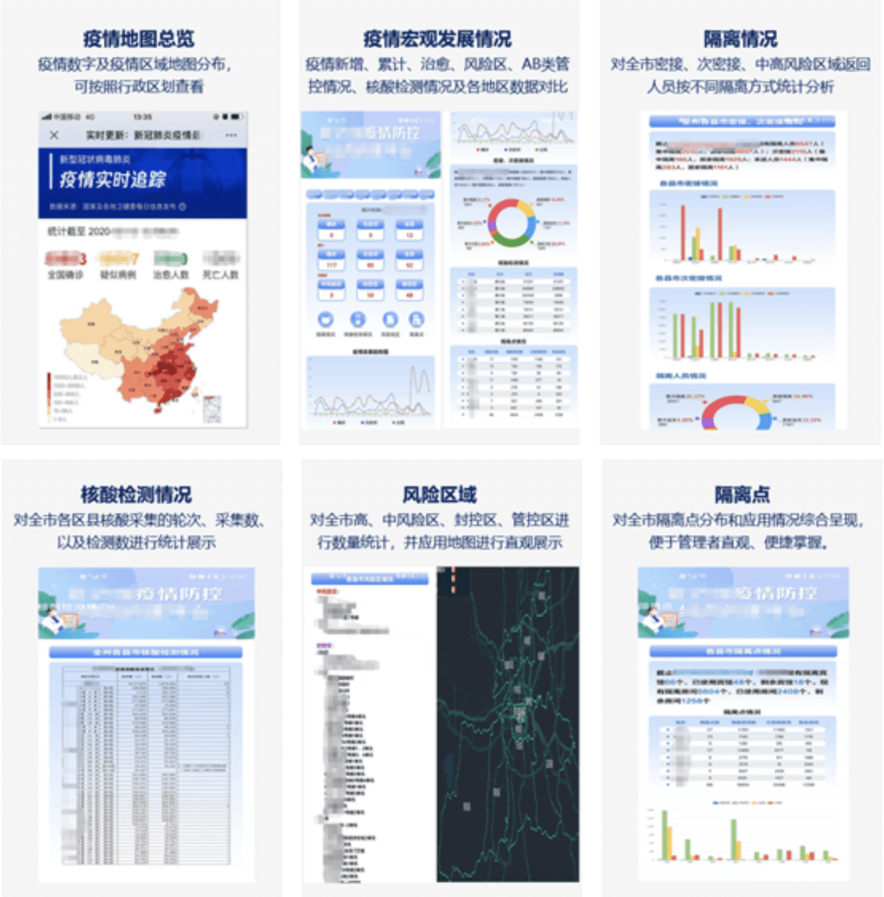 为知足防疫治理者多事情场景切换需求 ,世纪高通开发掌上疫情综合看板APP ,增补移动端疫情信息宏观掌握手段 ,建设疫情地图总览、疫情宏观生长情形、隔离情形统计、核酸检测统计、危害地区统计以及隔离点漫衍六个部分。纵向从省市扩展到区县 ,全方位一连追踪疫情研判撒播纪律 ,一连提高常态化疫情防控水平。